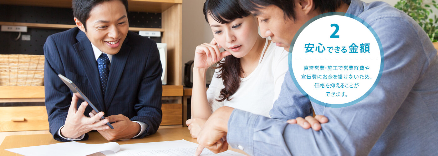 直営営業・施工で営業経費や宣伝費にお金を掛けないため、価格を抑えることができます。