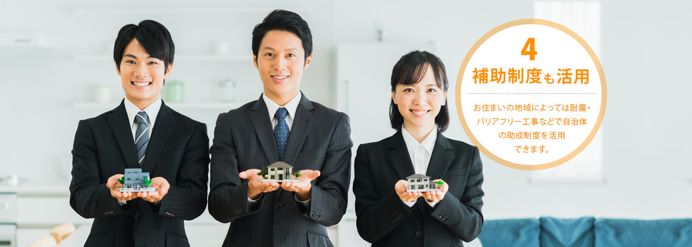 お住まいの地域によっては耐震・バリアフリー工事などで自治体の助成制度を活用できます。